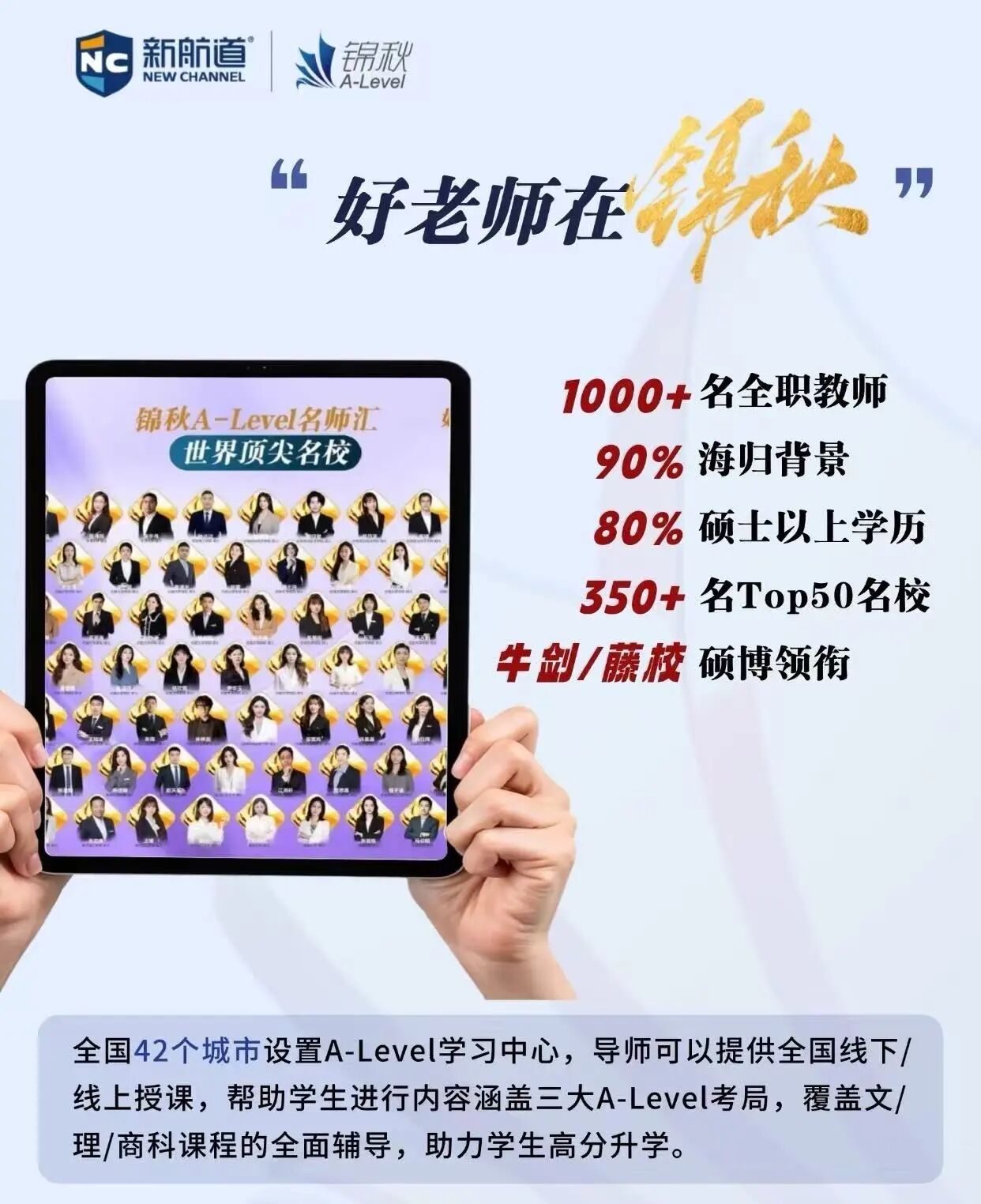 实际上无论选取哪条道路,提早筹划、严格实施、定位方为获得顶 尖院校录取通知的关键! 若你在修读A-level和DSE过程中,面临无从下手、疑难无人解惑、自制力不足等问题...助你高效提升成绩的南京新航道锦秋A-level、DSE培训课程值得了解!