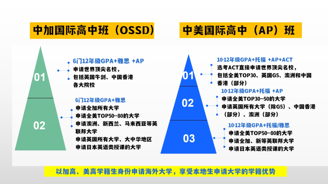 课程类型:中加国际高中班 (OSSD)、中美国际高中(AP)班