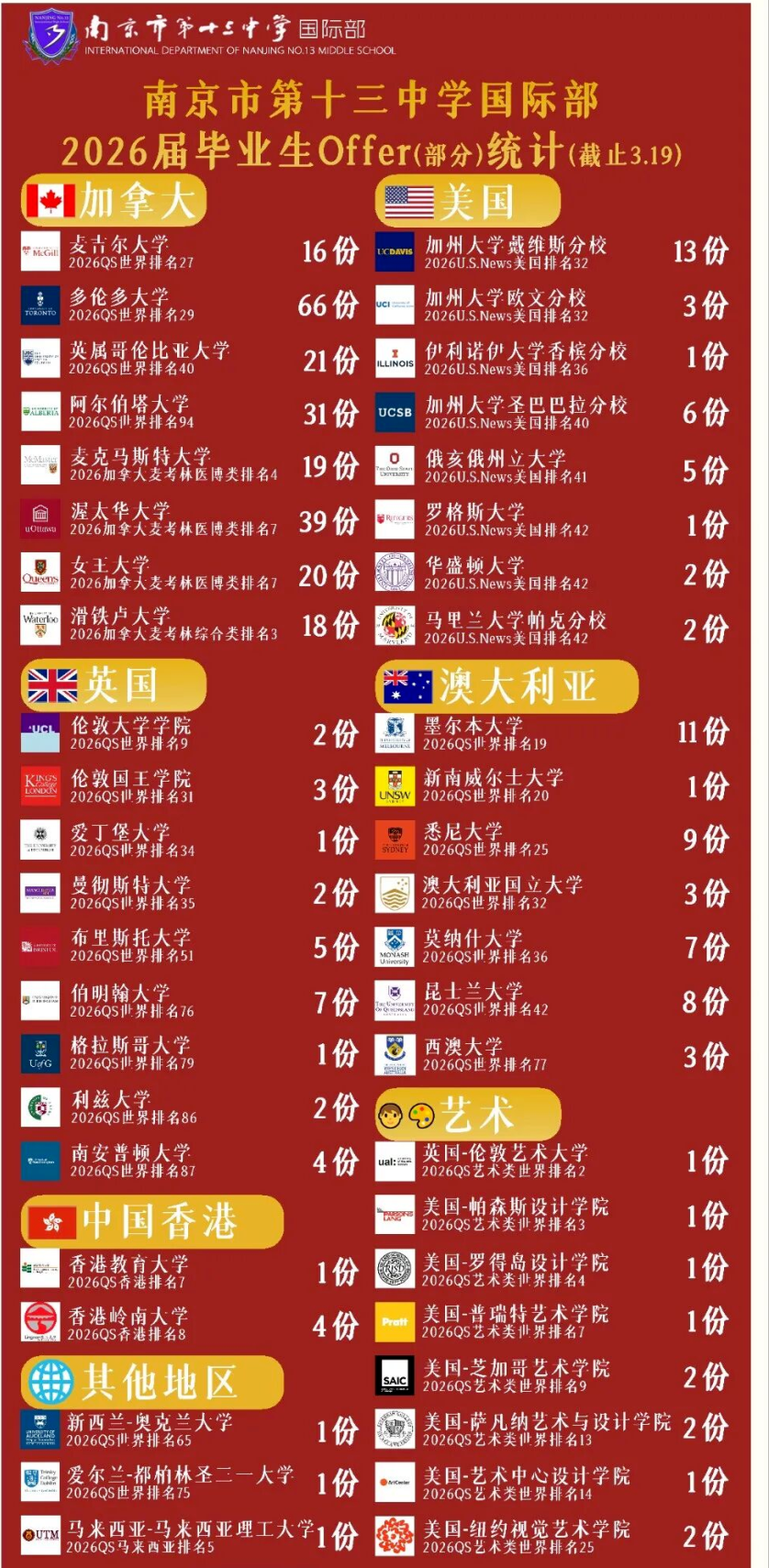 在日趋激烈的国际升学竞争中,学校中加班、中美班学子凭借开阔的全球视野与扎实的学术能力,实现了“多国混申、多点开花”,录取喜讯还在不断传来,让我们共同期待。