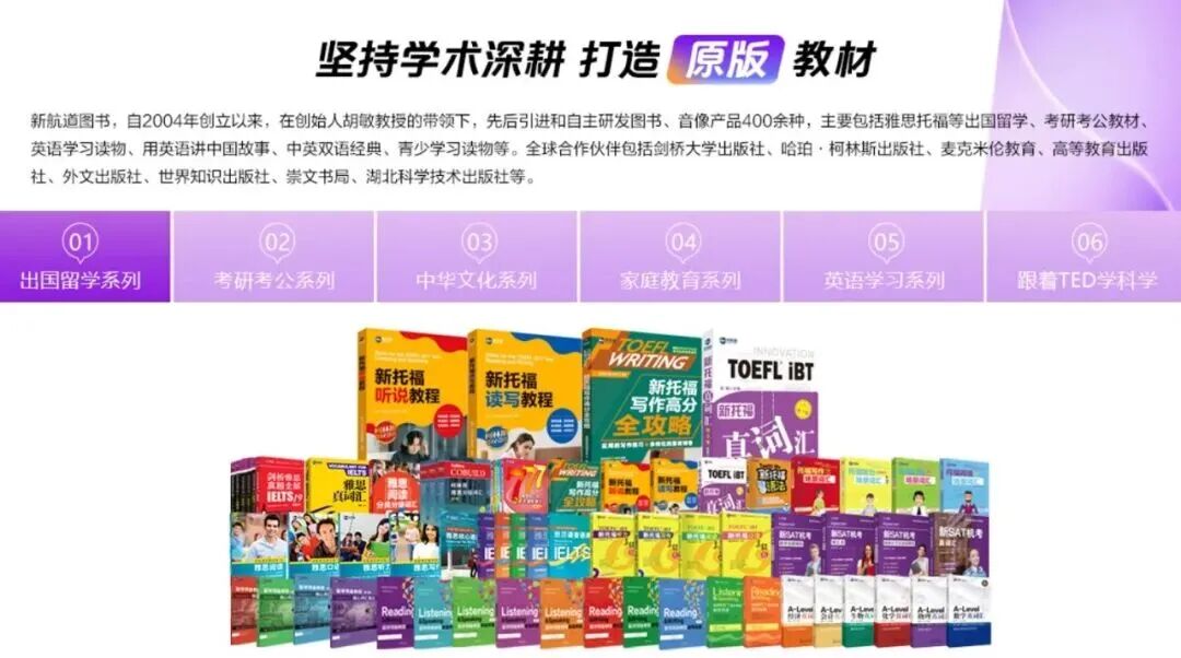 成立21年来,新航道依托深厚的学术积淀,建立了一套完整的托福考试教学与图书研发生态。从不断迭代的经典系列,到满足词汇、语法、场景应用等多维度需求的细分品类,我们通过科学严谨的研发体系,确保了每一本出版物都能切中考生痛点,成为备考路上的可靠助力。