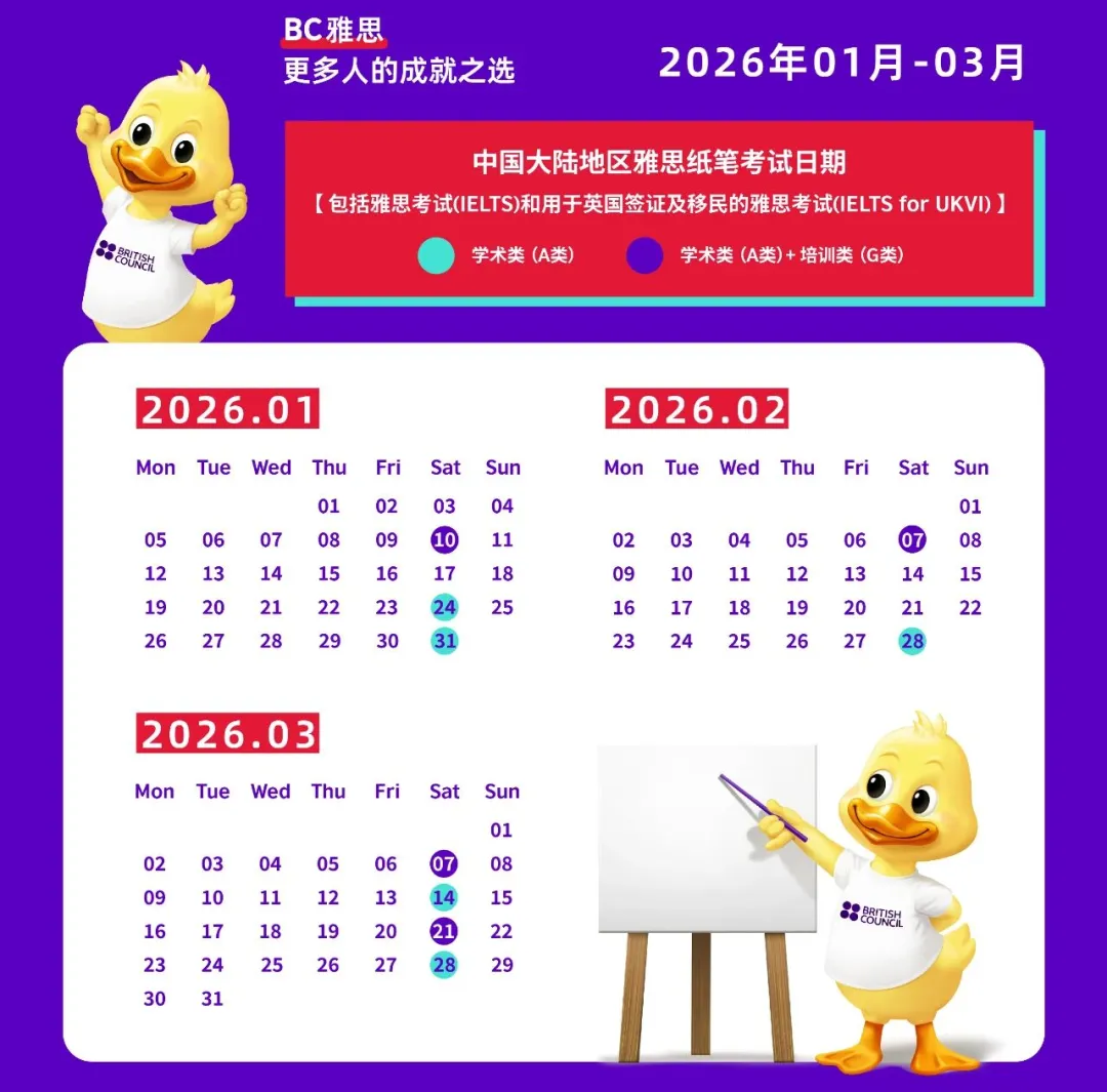2026年雅思1-3月的雅思考试已开放报名。根据官方信息,2026年1月1日及以后举行的考试报考费用进行了调整!