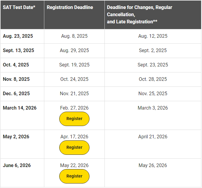 报名截止日期一般在考试前两周左右,请大家务必提前关注并按时完成报名。具体截止日期以及考试地点和考位信息,大家可以访问SAT官网进行查询和确认。
