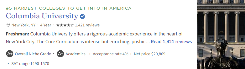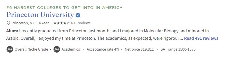 仅以”录取率”为主导的这种排名模式,使Niche这一排名更直观地反映出申请美国大学的竞争激烈状况,而非仅仅聚焦于学术声誉或者教学质量。接下来,大家和新航道南京留学中介小编一起看看最难考入美国大学的前十名都有哪些!