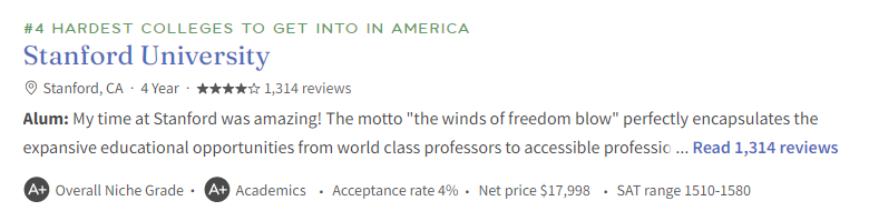 斯坦福位于硅谷中心是各大顶 尖科技公司的目标校,优越的地理位置,外加极强的教学和研究实力,注定了斯坦福大学的竞争不会低!