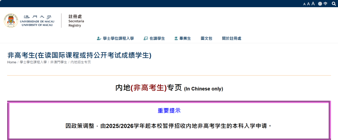 早在2025/2026学年招生季,中国澳门主要高校已明确调整政策: